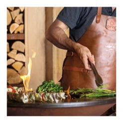 Ce magnifique tablier en cuir vous assure une double protection lorsque vous cuisinez avec un brasero OFYR :